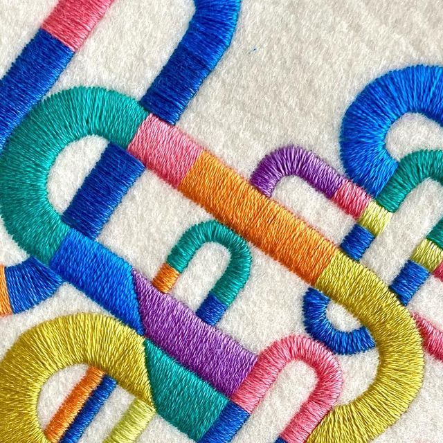 The stitches form a continuous chain-like pattern, creating smooth and resilient lines. It can be used to outline patterns or fill in simple color blocks, and is often used for detailed decoration on vintage-style clothing.